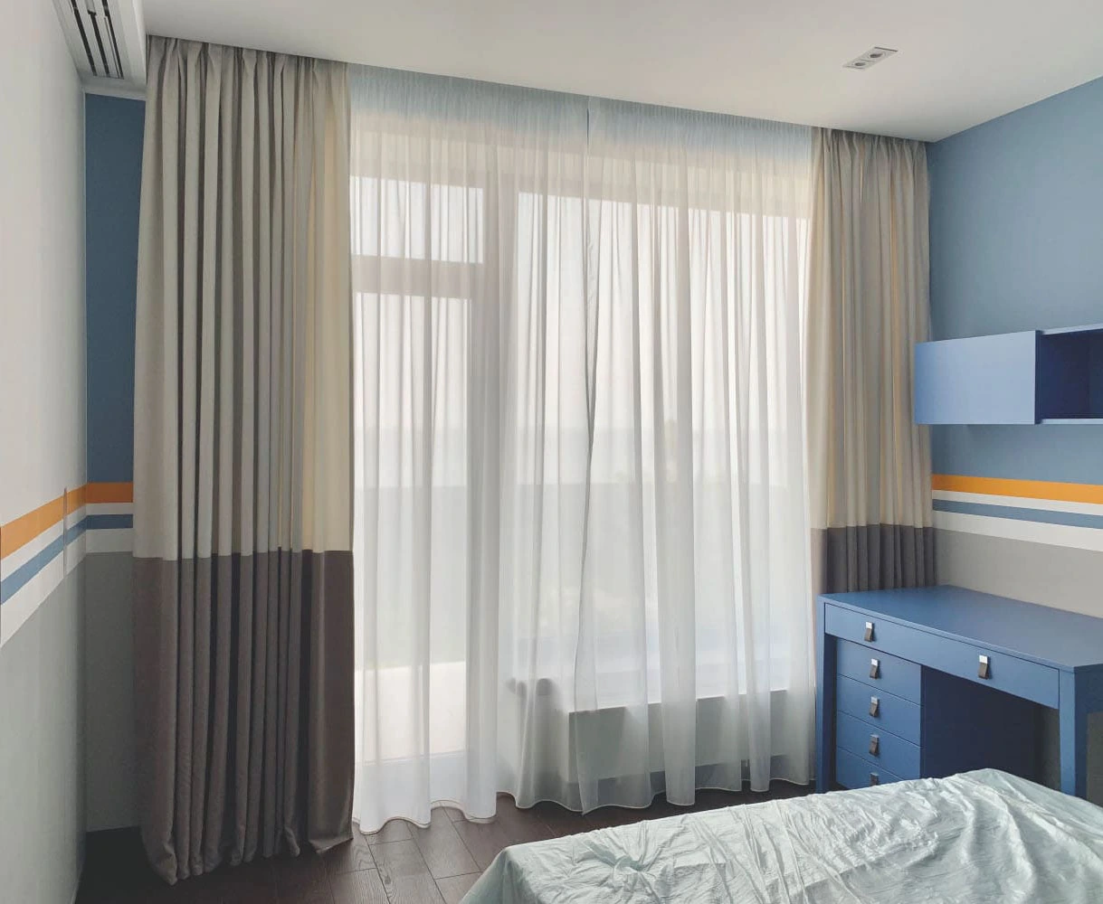 Ми створимо для вас затишний та комфортний простір за допомогою текстилю, включаючи штори, тюлі, жалюзі, покривала, подушки, балдахіни та карнізи.
